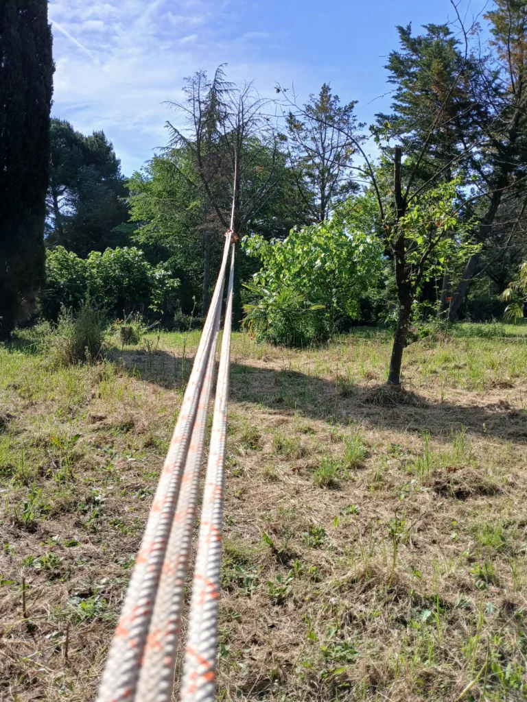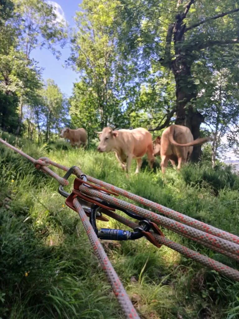 C’est un système de traction qui permet de donner une direction lors d’un abattage. Ici, il permet de descendre des troncs le long des chemins pour faire du bois de chauffe.