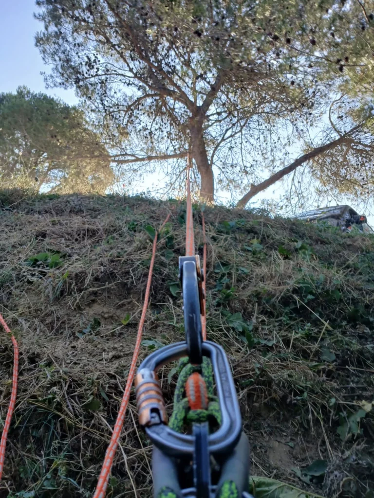 Certain débroussaillage sur terrain accidenté peuvent combiner les techniques d’élagages avec du débroussaillage classique.